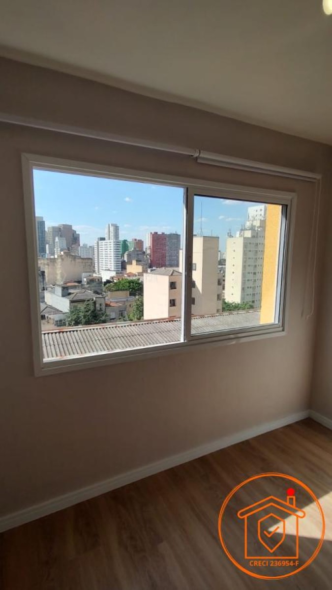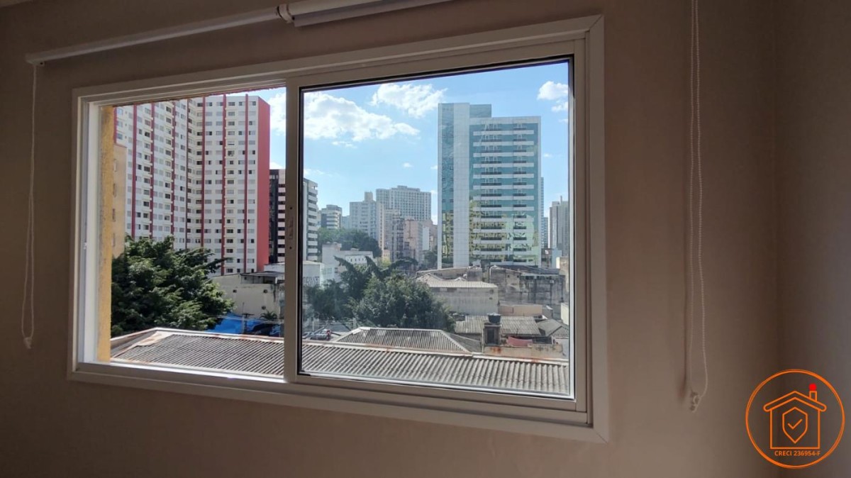 Apartamento de 34m² localizado no bairro da Liberdade, com ótima iluminação natural e ventilação. O prédio possui portaria 24 horas e oferece uma vista ampla da cidade.