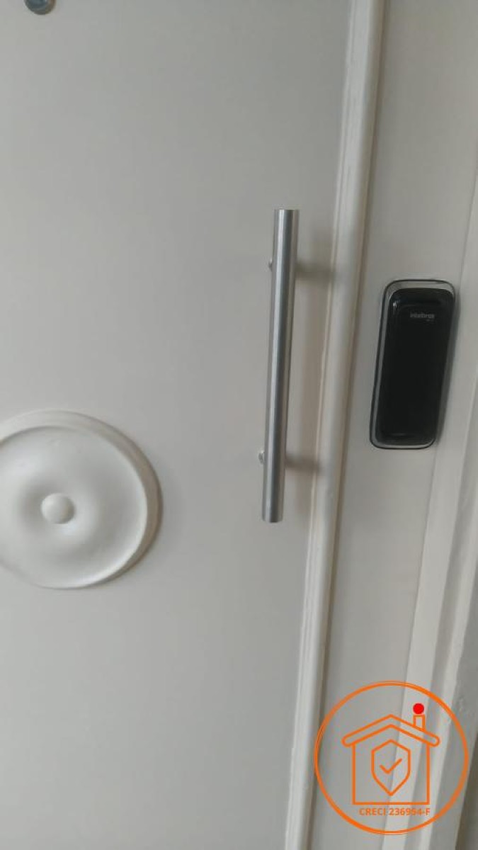 A porta possui fechadura eletrônica para maior segurança.
