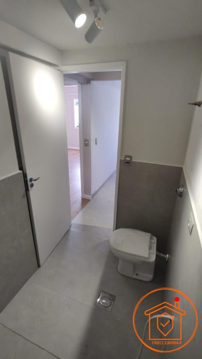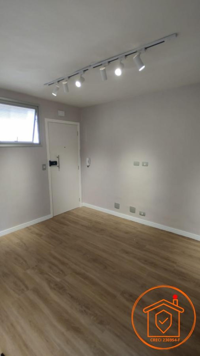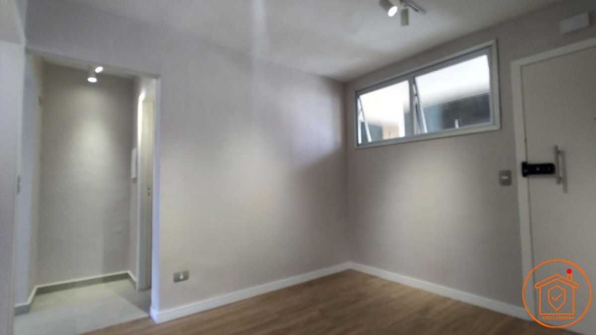 Totalmente reformado, o apartamento apresenta papel de parede na sala e quarto, luminárias de trilho em LED, piso vinílico e sistema elétrico e hidráulico renovados.